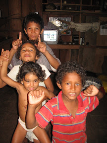 Pour le poisson la coutume est que les hommes ramenent les poissons deja nettoyes. Donc pendant que Jose, le leader de la communaute avec qui j ai fait la viree en pirogue, nettoyait le poisson qu on avait [enfin surtout lui...] pecher dans la riviere avec des lignes, eh bien j etais capitaine de dori et on a vu un singe marron plutot grand mais je ne saurais dire quel type de singe et je n ai pas de photos non plus. Mais je l ai vu truc de ouf. On a aussi croise une grosse loutre [water dog], des grands oiseaux chelous, pleins d'iguanes partout.